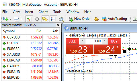 英磅兑美元在一周后跌至1.26710/1.26712,你决定在1.26712止盈买回2标准手。